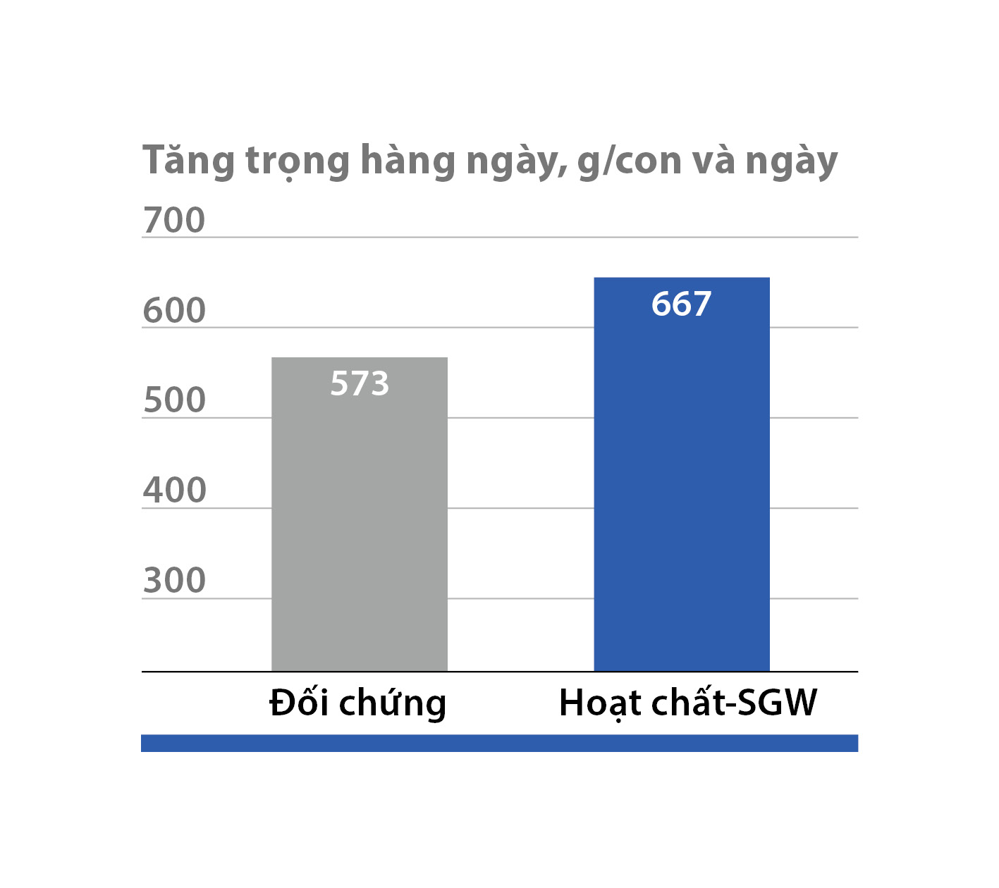 Hình 2. Tăng trọng hàng ngàyHình 2. Mức tăng trọng hàng ngày cao hơn do hoạt chất-SGW (thử nghiệm trên bê, n = 60)